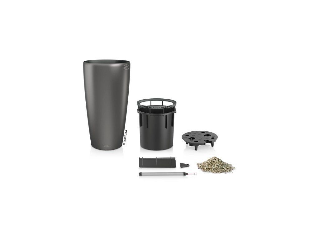 Obsah setu Rondo 40 Lechuza:- vonkajšia nádoba Rondo Lechuza s povrchom Lechuza premium (metalická a vysoko lesklá farba)