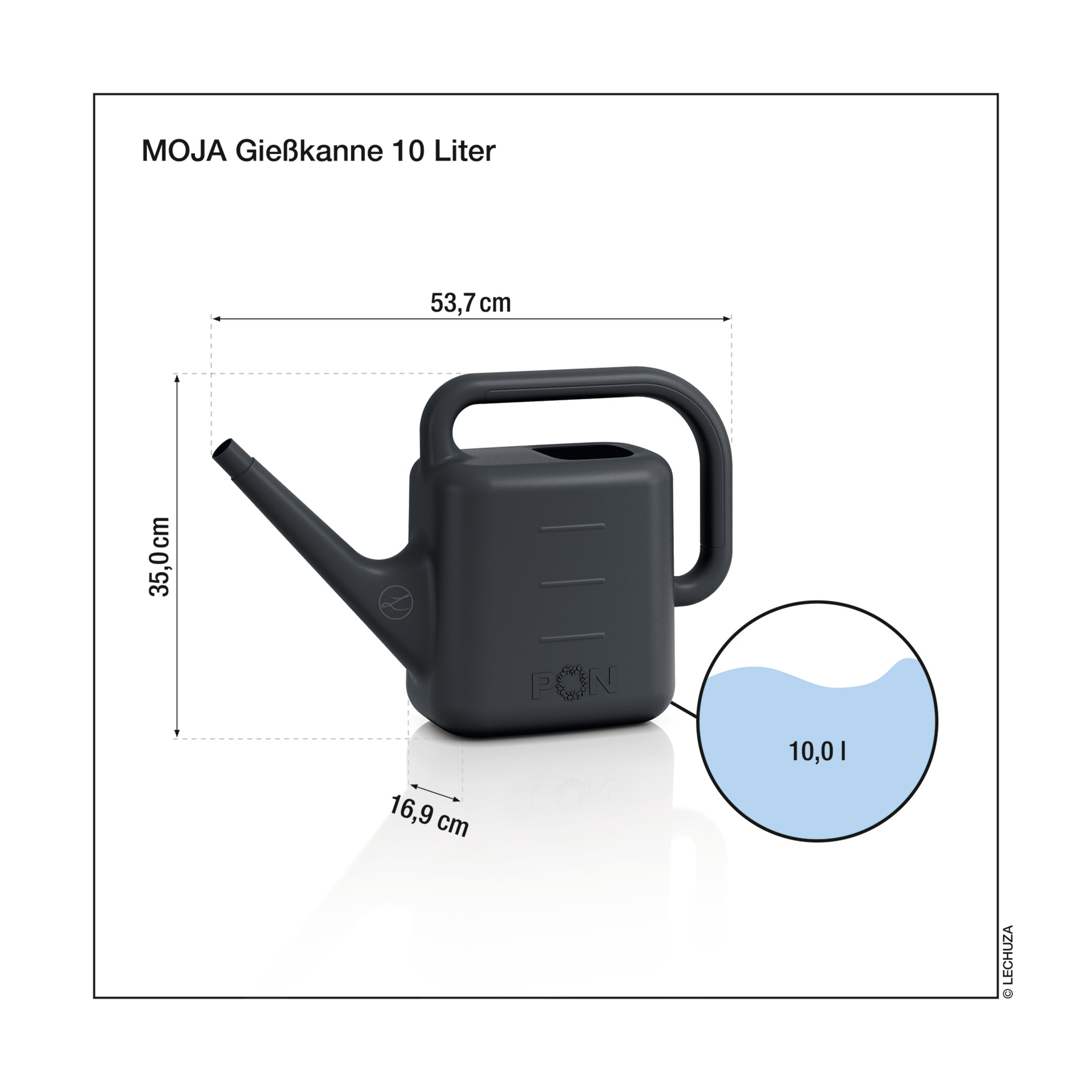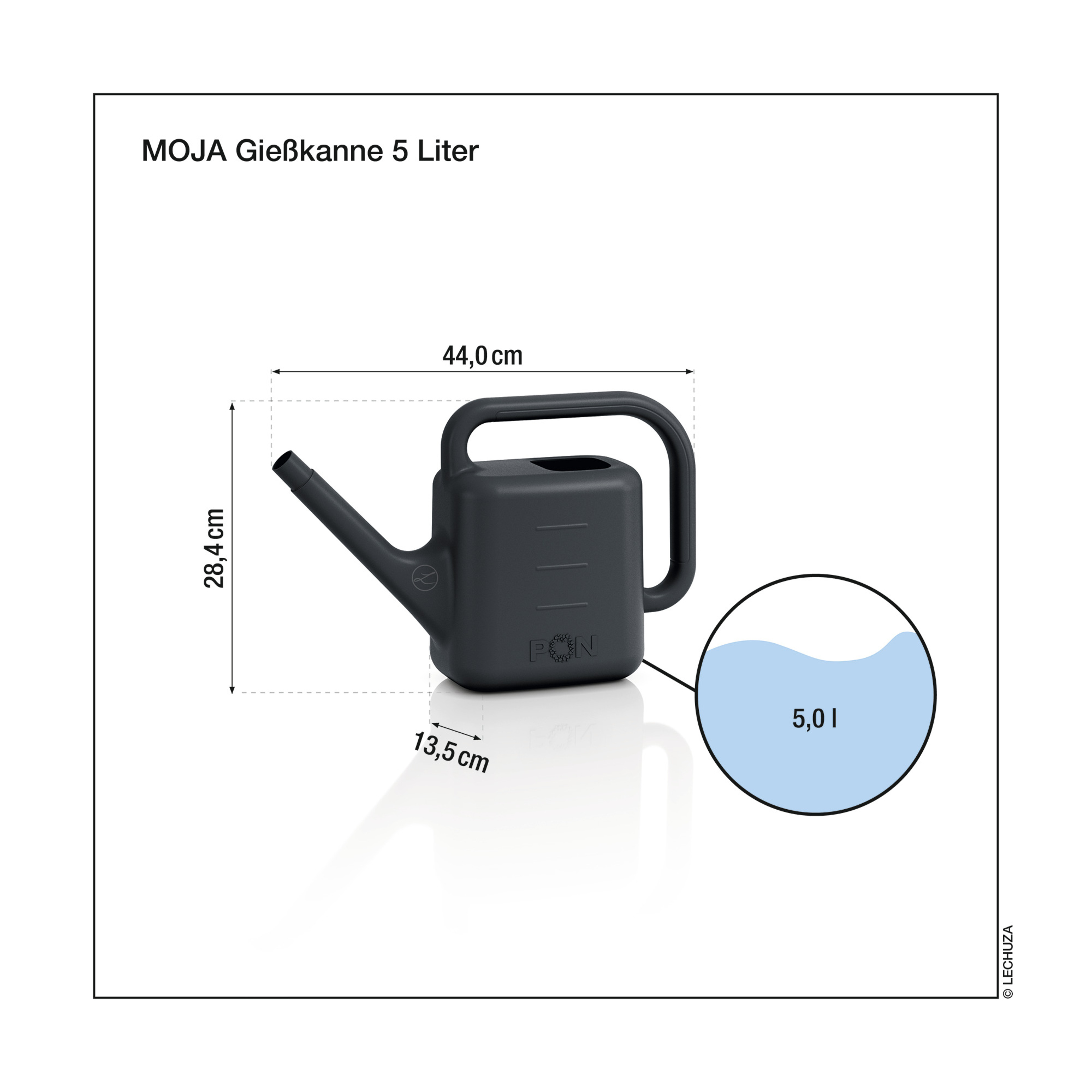 S vhodným príslušenstvom je zalievanie ešte jednoduchšie: samostatne dostupná sprchová hlavica MOJA v čiernej farbe umožňuje rovnomerné polievanie na väčšej ploche. Alternatívne je možné krhlu MOJA doplniť o nadstavec PICO, ktorý uľahčuje nalievanie vody do otvoru kvetináčov LECHUZA. Oba nadstavce sú kompatibilné s oboma veľkosťami.